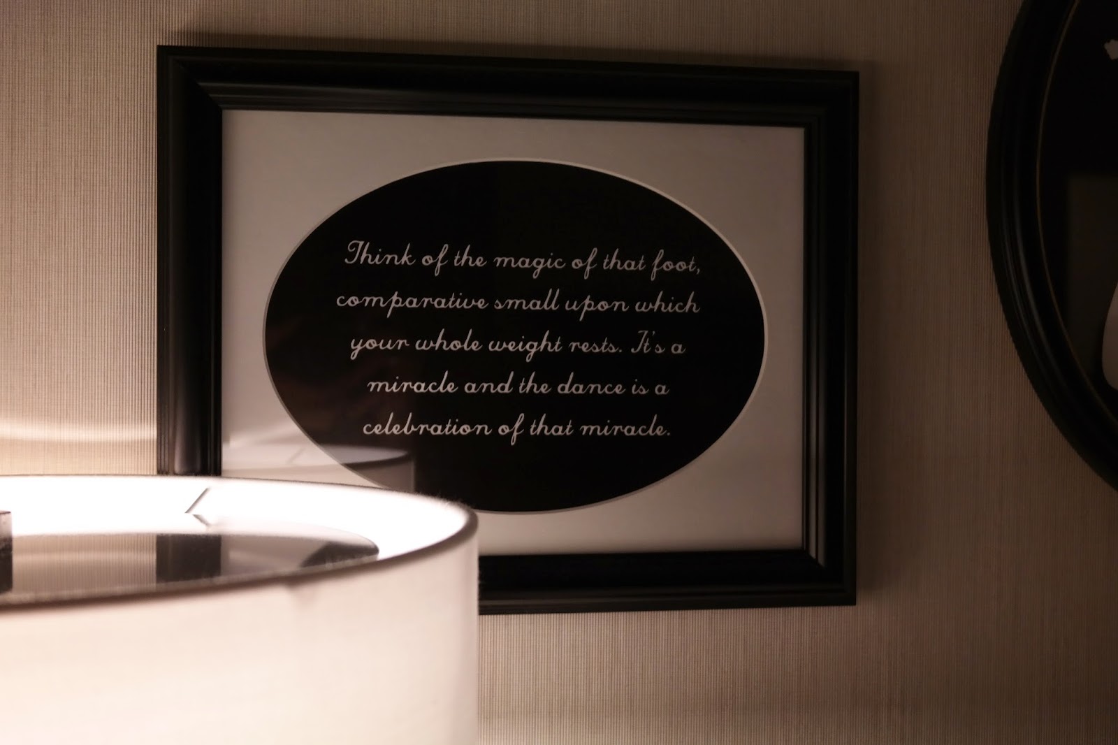 Framed feathers accentuate the elevator corridor on the 5th floor;